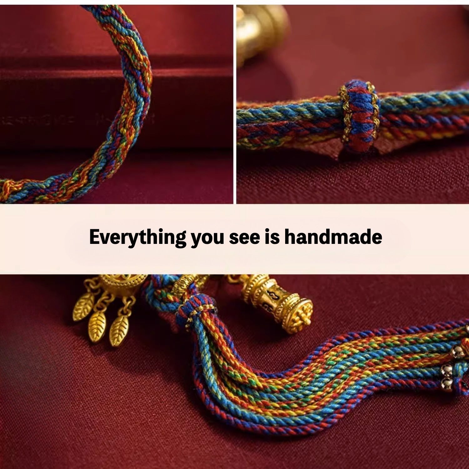 Material: Traditional Tibetan red rope, known for its spiritual and protective properties.