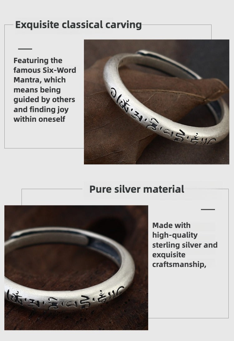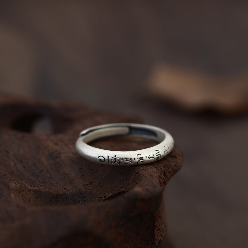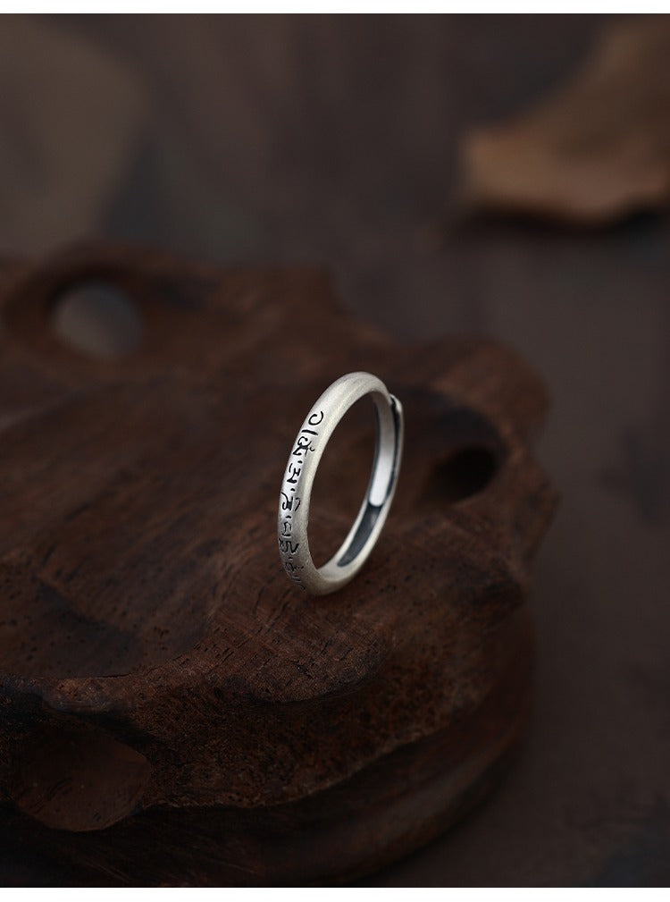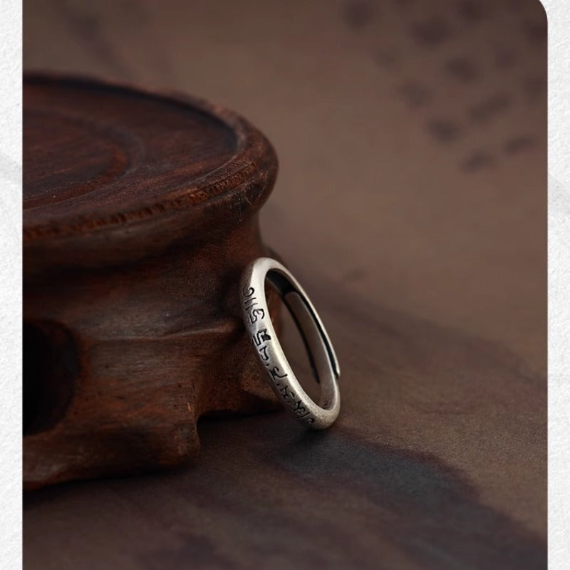 Zen Healing Tibetan Six True Words 925 Silver Calm Ring