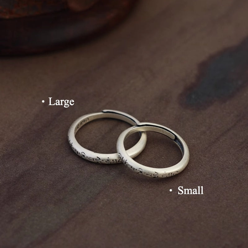 Embrace peace and inner harmony with the Zen Healing Tibetan Six True Words 925 Silver Calm Ring. Crafted from high-quality 925 sterling silver, this ring features the iconic Tibetan Six True Words mantra, a symbol of wisdom, guidance, and spiritual balance. Its open adjustable design allows for a comfortable fit, making it suitable for different finger sizes. Whether you're seeking tranquility or simply looking to add a meaningful piece of jewelry to your collection, this calming ring offers both beauty and spiritual significance. Available in both large and small sizes to meet your needs.