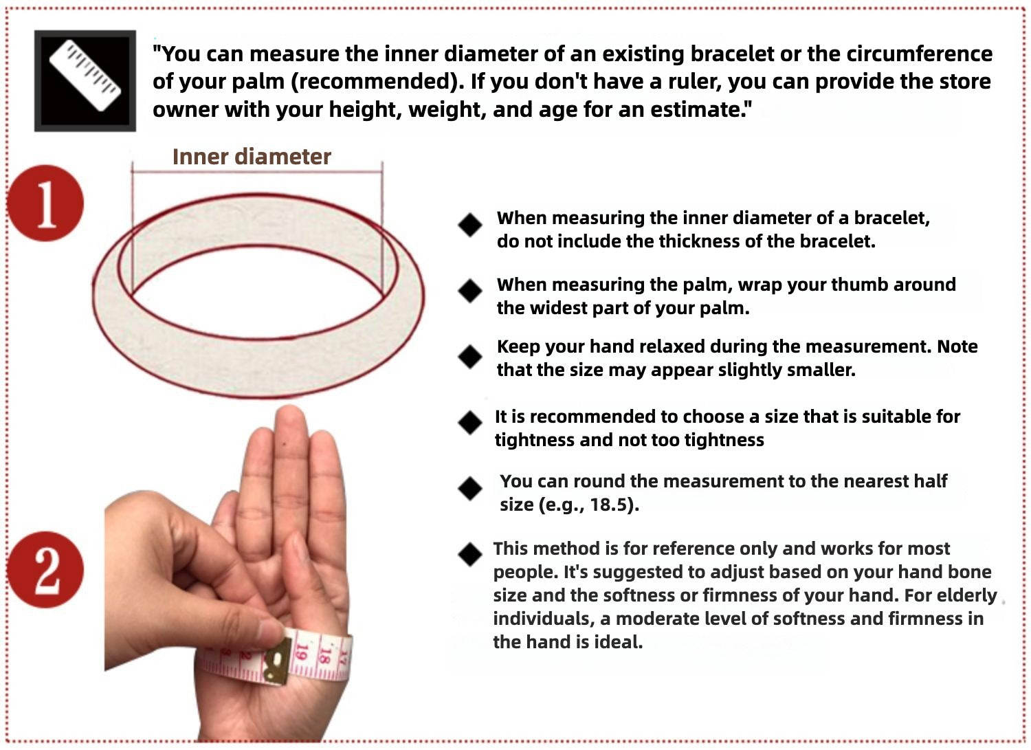 Select the Right Size: Measure the circumference of your palm (around the widest part of your palm) and choose the appropriate bracelet size.