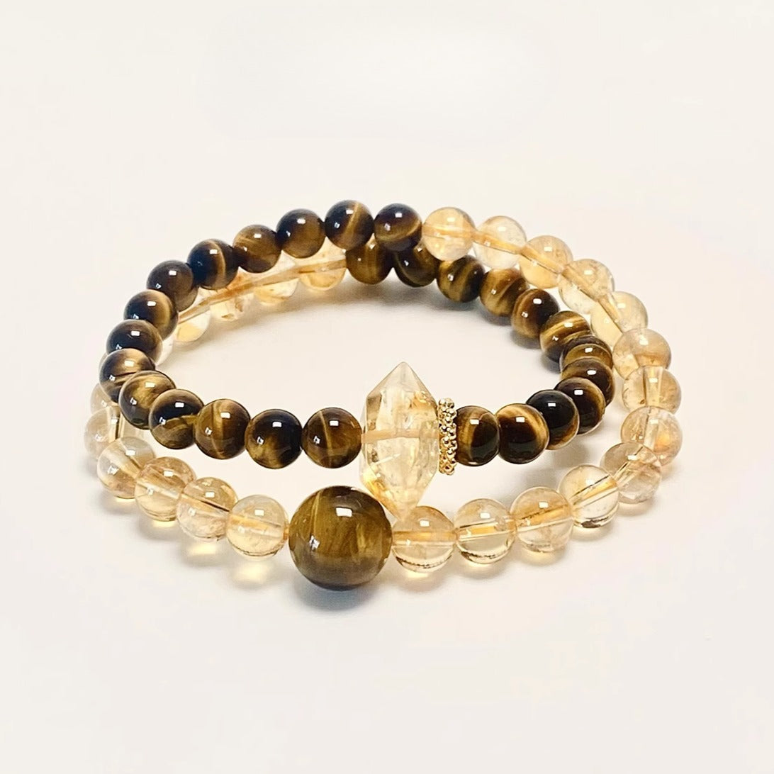 Zen Healing Tiger Eye Citrine Empowerment Abundance Double Wrap Bracelet