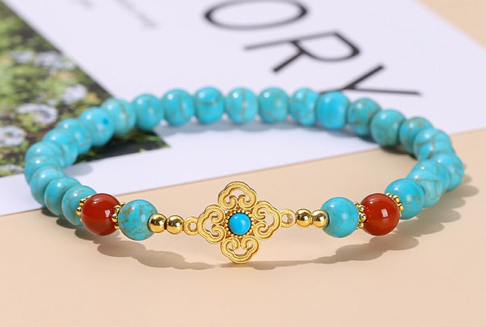 Material: The bracelet is made from natural turquoise beads、copper charm, each one measuring 6mm in diameter. Turquoise is revered for its healing properties, offering protection from negative energies and promoting a sense of tranquility and balance.